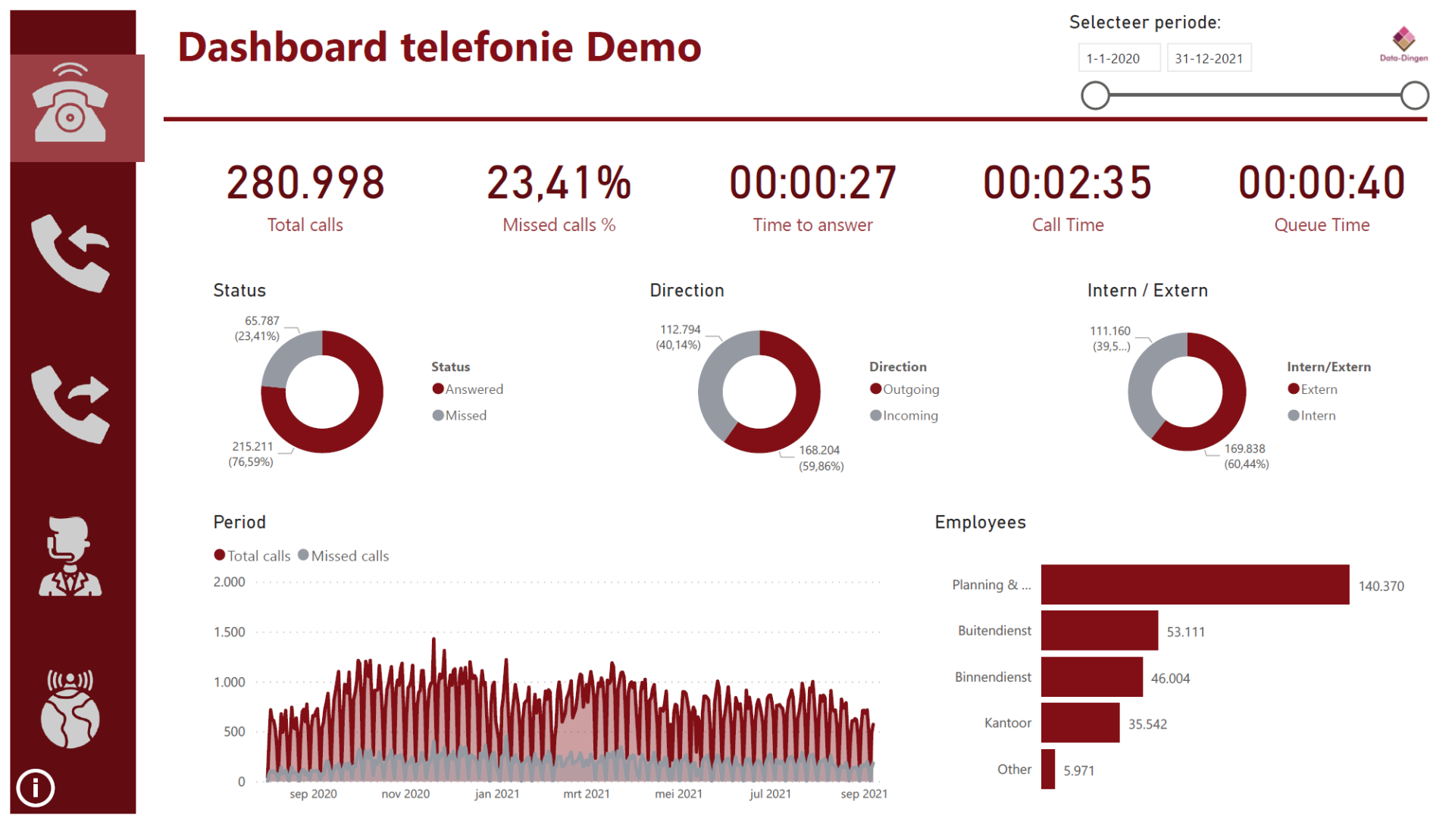 Visualiseer je telefoniedata automatisch in Microsoft Power BI om te kunnen sturen op de cijfers van je bedrijf, team of individuele medewerker.